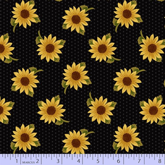 Marcus Fabrics Grassland Flannels Sunflowers Black